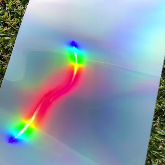 Premium holographic water resistant vinyl sticker paper suitable for printing with inkjet printers and cutting with machines such as Cricut, Silhouette, and Siser.