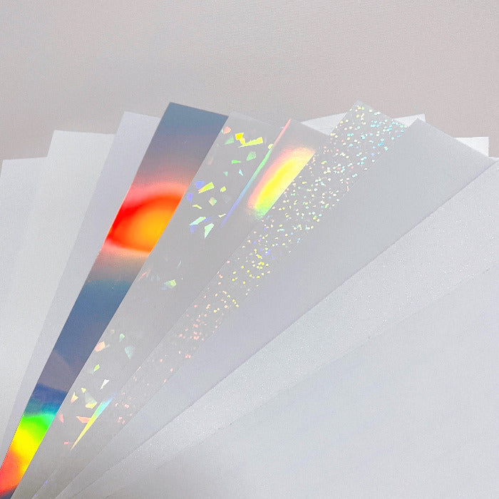 Try before you buy! You can purchase samples of any sticker paper or laminate in our rage for $2 a sheet.